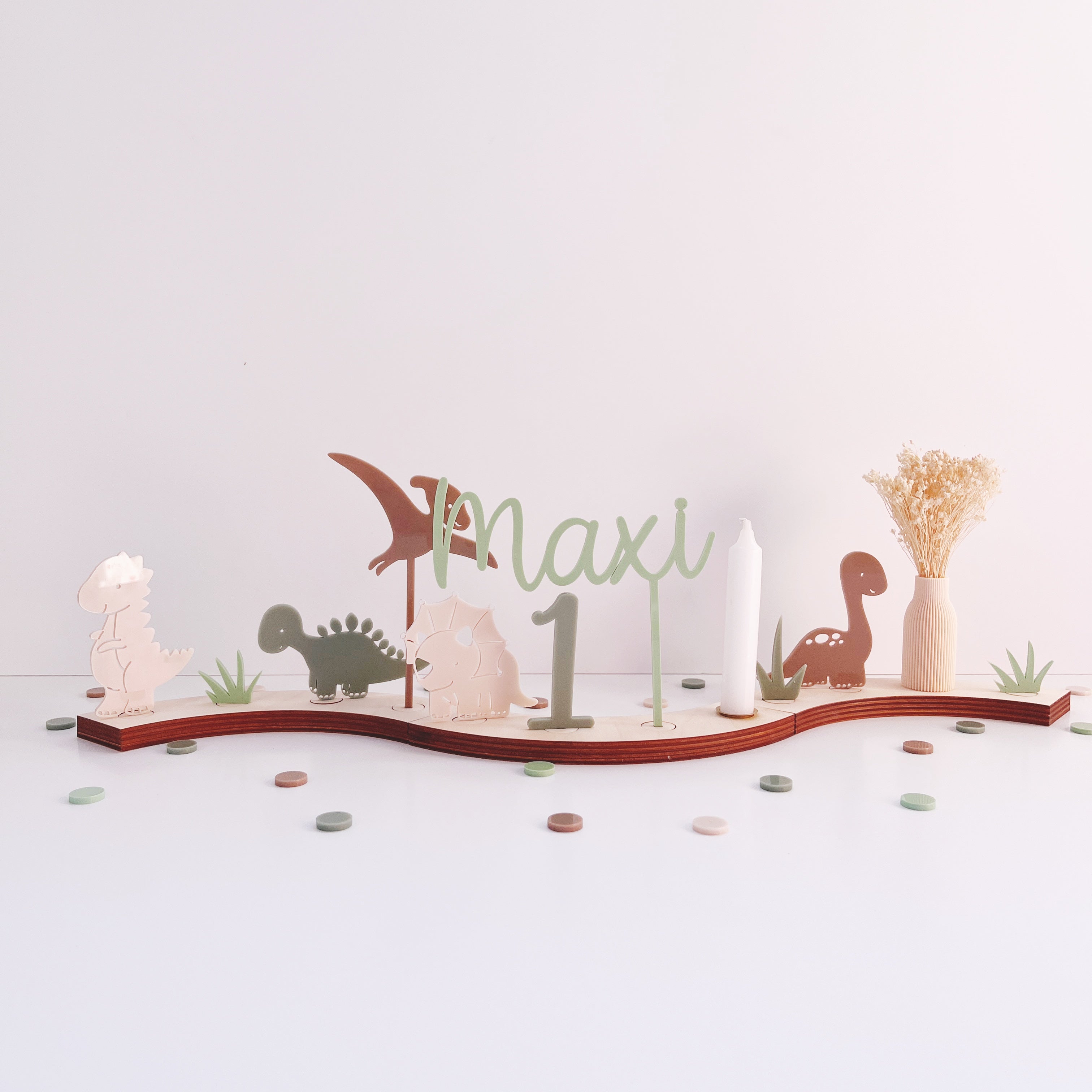 Zahlenpaket aus Holz B-Ware für Personalisierten Geburtstagsteller mit Vase und Kerze, Kerzenplatte, Geburtstagskranz