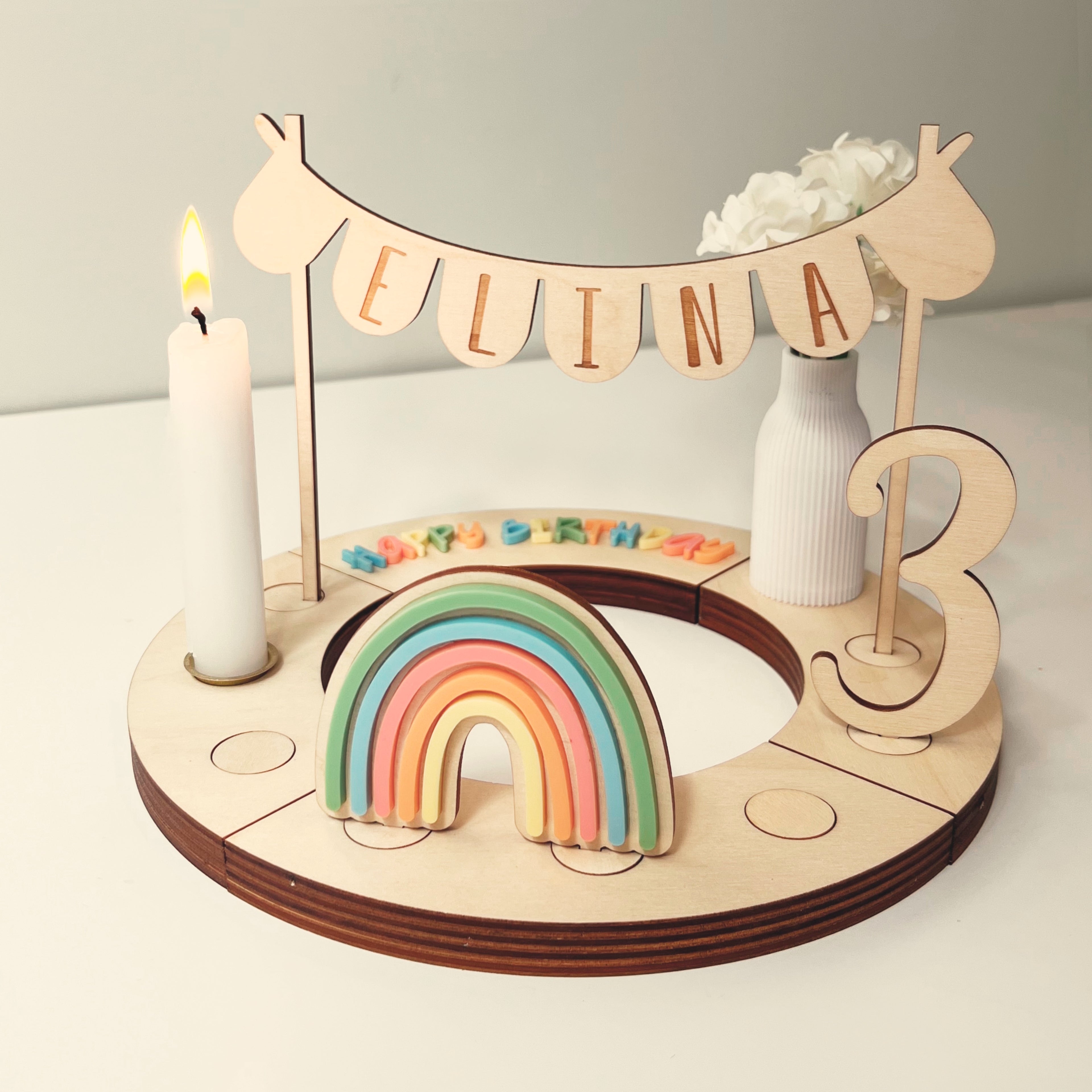 Zahlenpaket aus Holz B-Ware für Personalisierten Geburtstagsteller mit Vase und Kerze, Kerzenplatte, Geburtstagskranz