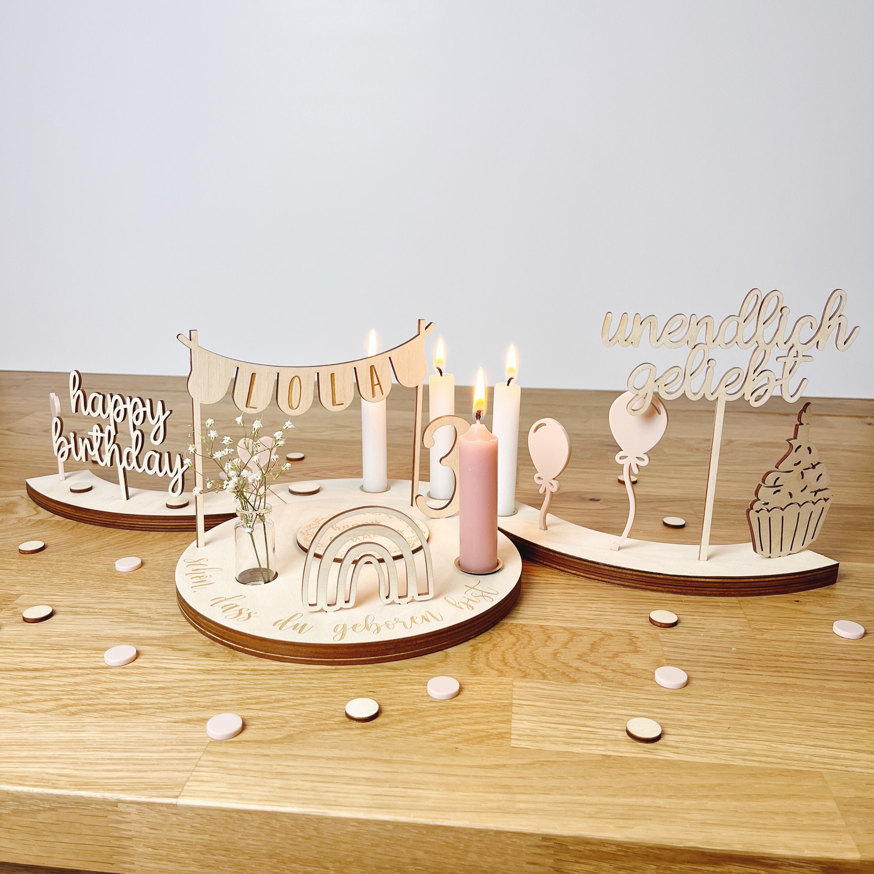 Zahlenpaket aus Holz B-Ware für Personalisierten Geburtstagsteller mit Vase und Kerze, Kerzenplatte, Geburtstagskranz